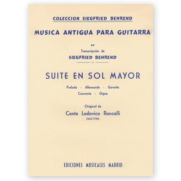 Roncalli, Lodovico. Suite en Sol Mayor. Transcribed Behrend quantity