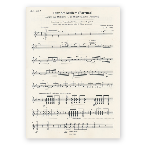 de Falla, Manuel. Miller’s Dance for Guitar Quartet. Arr. Hoppstock (SET OF PARTS)