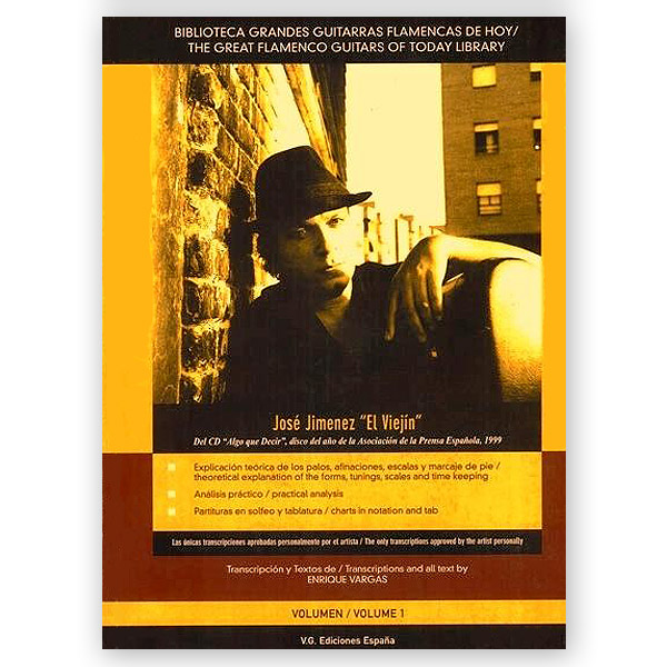 The transcription of José Jimenez El Viejín’s album “Algo que decir”. The first work published by the founder of the sophisticated and mysterious “Caño Roto” style of guitar. This musically and technically complex style is unique to the gypsy neighborhood Caño Roto in Madrid, where the highest concentration of flamenco guitarists in the world can be found. This album was awarded the “Discovery of the Year 1999” prize by the Spanish Press Association. The album features such artists as guitar maestro Paco de Lucía, Montse Cortés, Carles Benavent, Antonio Canales, Ramón el Portugues, Bernardo Parrilla and Luki Losada.