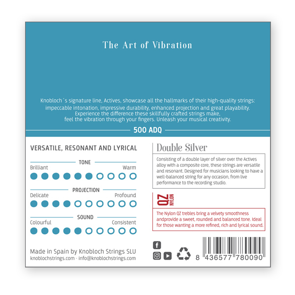 Knobloch Actives QZ Nylon 500ADQ High Tension Classical Guitar Strings, Complete Set