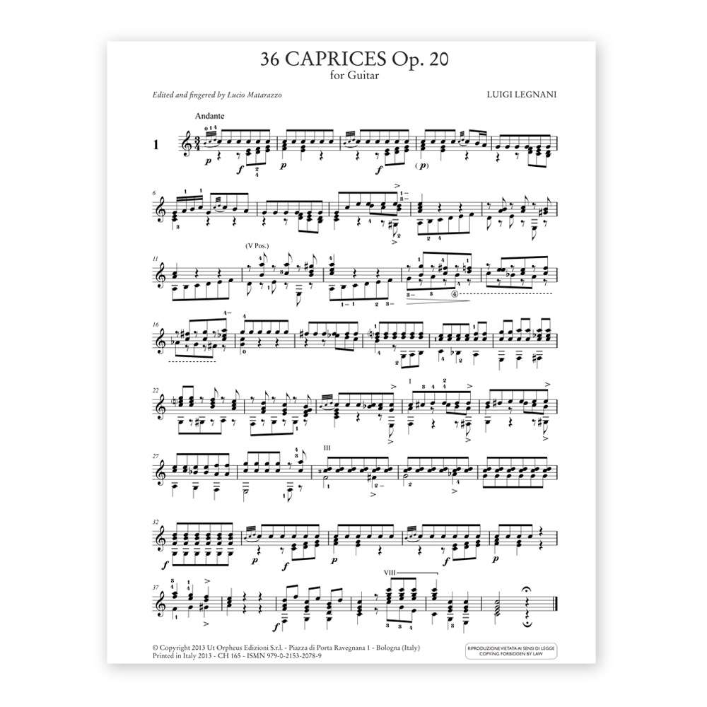Luigi Legnani (1790-1877), “36 Caprices Op. 20 for Guitar”