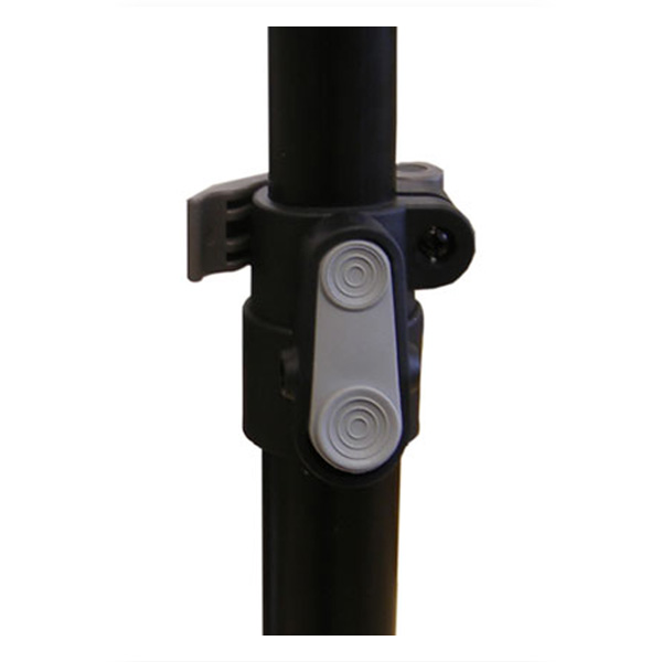 Light weight aluminum speaker stand is capable of withstanding up to 100 lb of speaker and equipment.