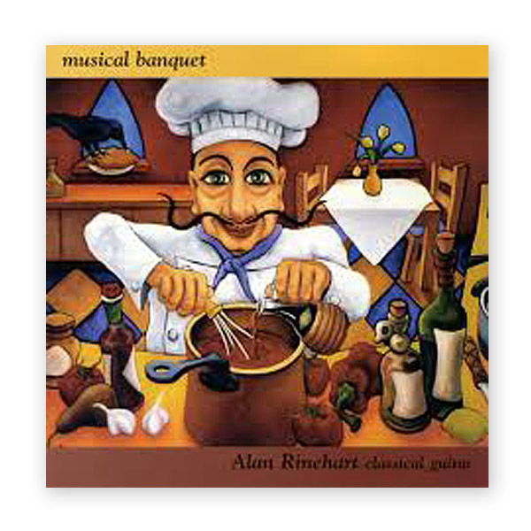 This recording was conceived of as a musical equivalent to a culinary banquet. Taking the dictionary definition of banquet (‘an elaborate or extensive feast”) as a starting point, the works presented here follow a path through musical styles as one would enjoy a fine meal. A classic appetizer sets the ‘meal’ off, followed by an ‘antipasto’, two courses of ‘chef’s specials’ each full of many colours and ‘flavours’, a lighter dessert course and a rousing finale to send the listener home with a smile.