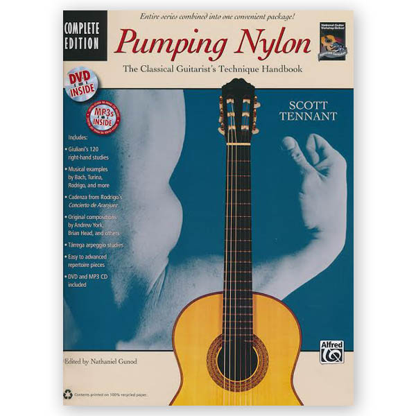 World-class classical guitarist and well-respected educator Scott Tennant presents the most comprehensive technique handbook available for classical guitarists. This complete edition combines all three volumes of Scott’s best-selling Pumping Nylon series. In addition to technical information not available elsewhere, it includes classic etudes by Carcassi, Giuliani, Sor, and Tarrega; musical examples by Bach, Turina, and Rodrigo; and original compositions by Andrew York and Brian Head. Learn easy to advanced repertoire pieces that are selected and designed to work with the various techniques addressed, including arpeggios, tremolo, scale velocity, and more. The included DVD features Scott Tennant, and the MP3 CD features the playing of Scott Tennant and Adam del Monte.